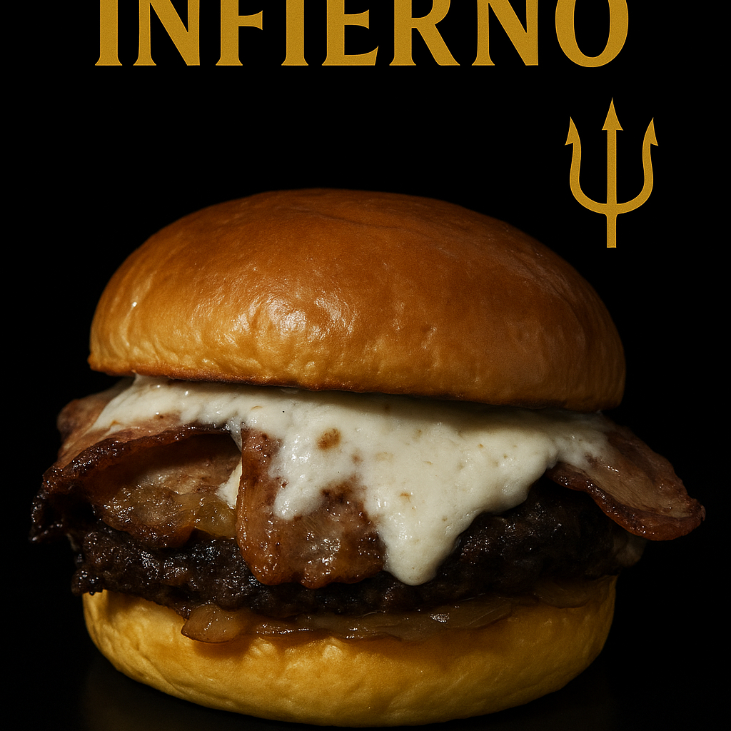 Pan brioche Smash burguer doble Doble queso cheddar guanciale ibérico Cebolla caramelizada Salsa carbonara